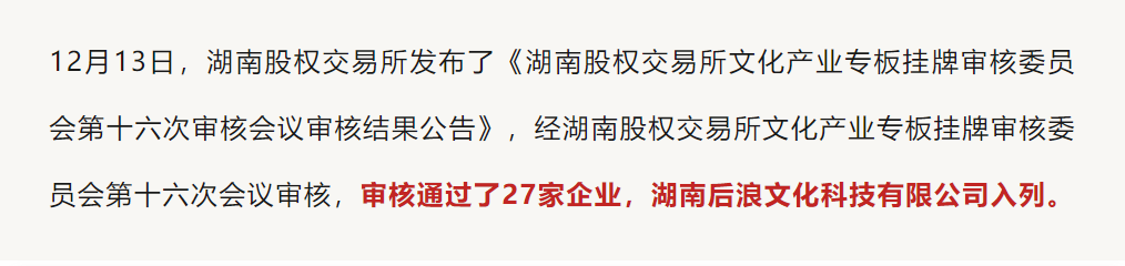 湖南股交所公众号公示审核结果