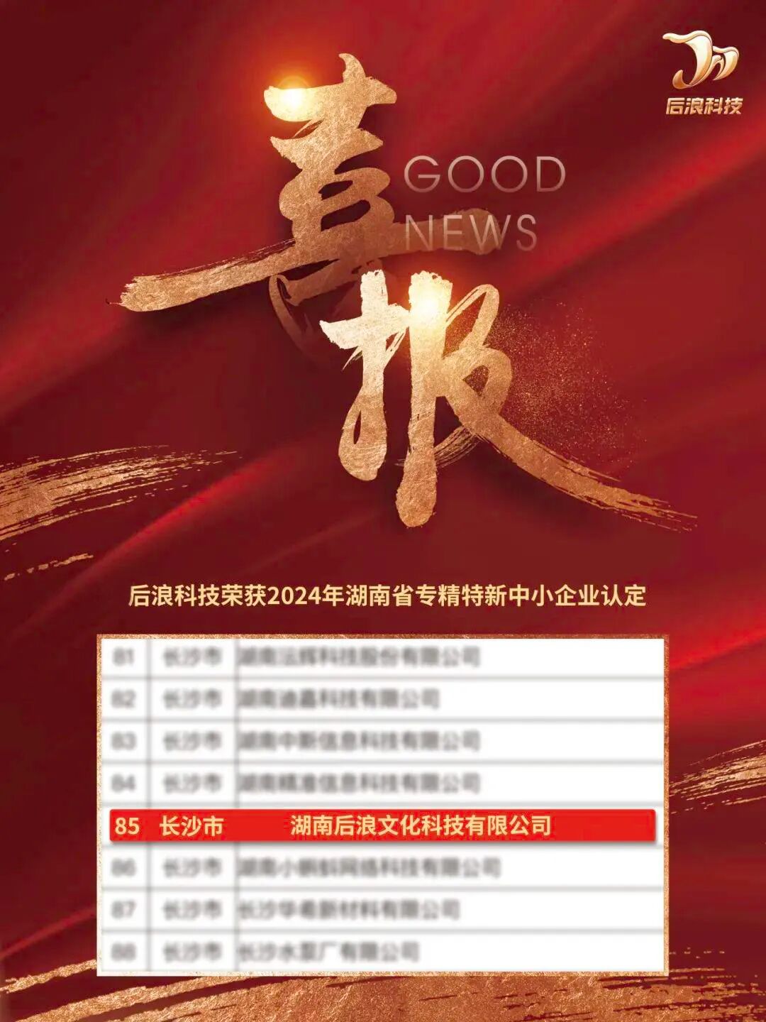 后浪科技曾获得国家高新技术企业、科技型中小企业 、创新型中小企业、湖南股权交易所文化产业专板挂牌企业等荣誉。公司专注研发和创新, 具有1项发明专利、4项实用新型专利、2项商标、20项软著著作权等知识产权,为企业科技创新提升了软实力。